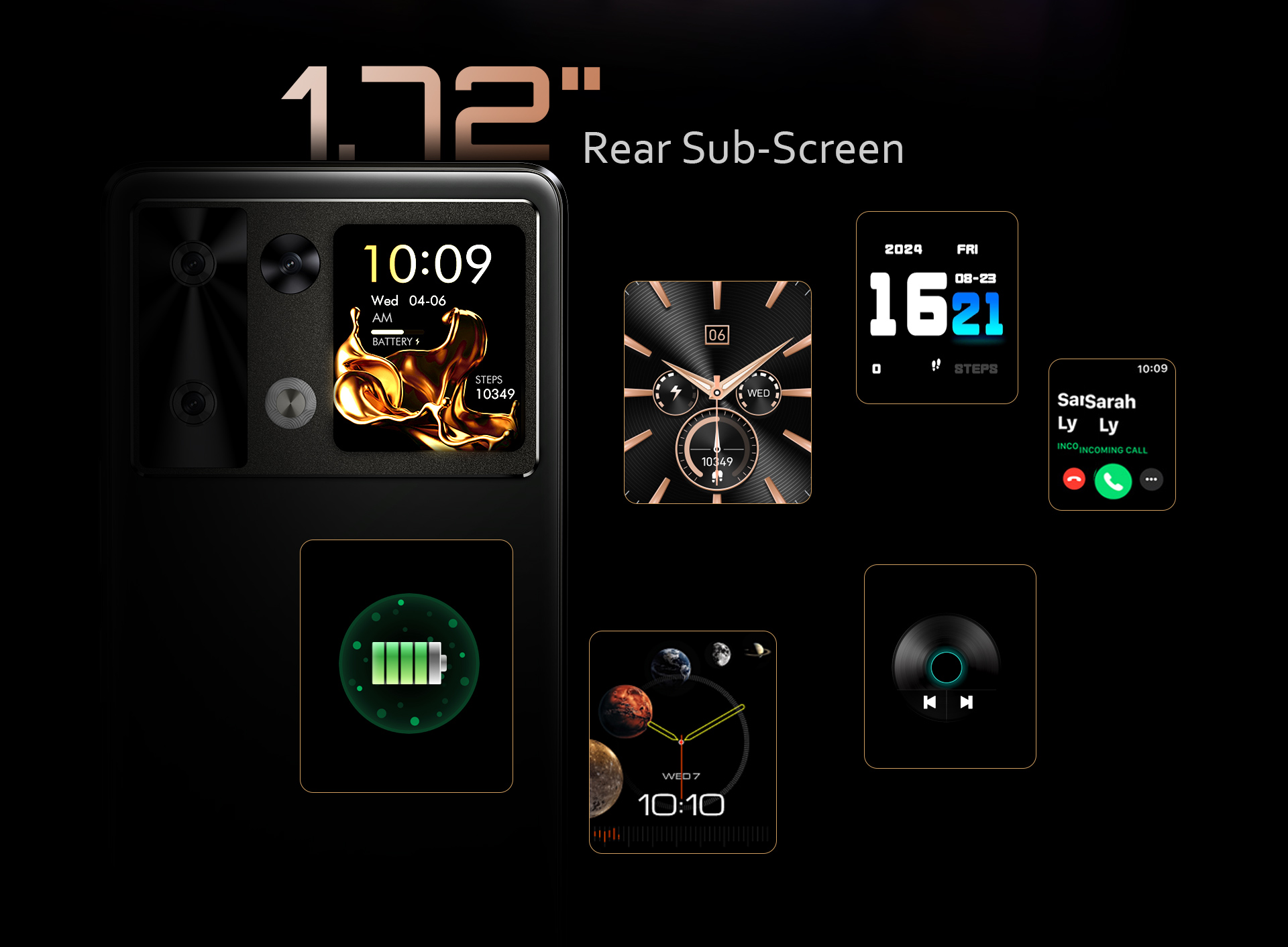 ¿Por qué conformarte con una si puedes tener dos? La pantalla HD+ de 6.88" con tasa de refresco de 120Hz te ofrece una experiencia visual envolvente, mientras que la pantalla secundaria trasera de 1.72" te permite ver notificaciones, controlar la música y tomar selfies rápidas, todo sin desbloquear tu teléfono. ¡Una forma más inteligente de hacer multitareas!