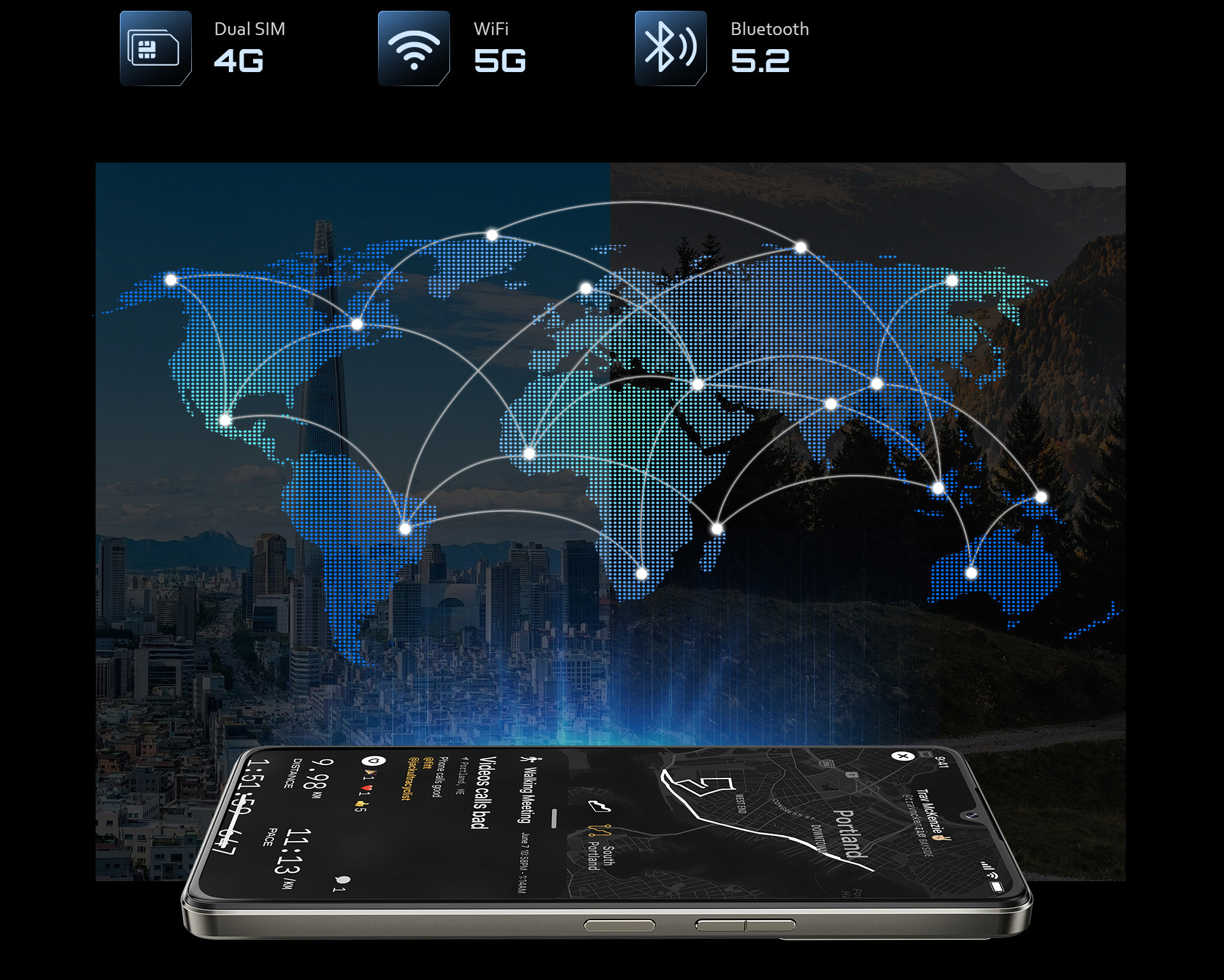 Con Dual SIM 4G, WiFi 5G y Bluetooth 5.2, siempre estarás conectado. Ya sea en la ciudad o fuera de ella, cuenta con GPS, GLONASS, Galileo y BEIDOU para una navegación precisa.