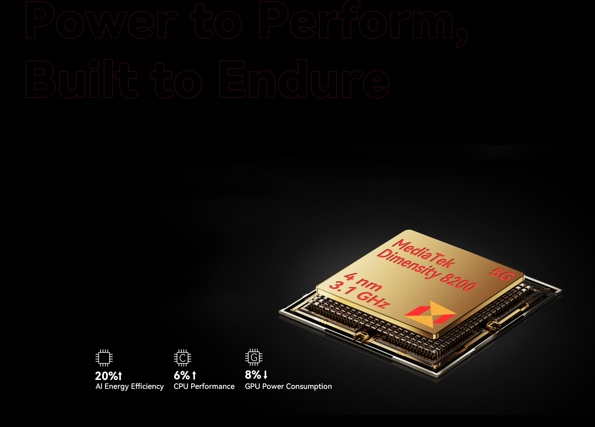 8200 5G processor. The 4nm architecture and 3.1GHz clock speed ensure