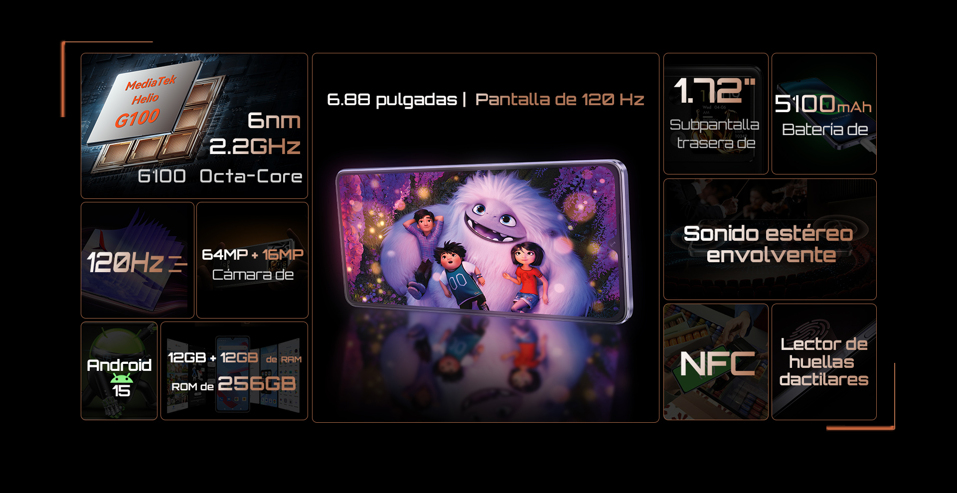 ¿Por qué conformarte con una si puedes tener dos? La pantalla HD+ de 6.88" con tasa de refresco de 120Hz te ofrece una experiencia visual envolvente, mientras que la pantalla secundaria trasera de 1.72" te permite ver notificaciones, controlar la música y tomar selfies rápidas, todo sin desbloquear tu teléfono. ¡Una forma más inteligente de hacer multitareas!